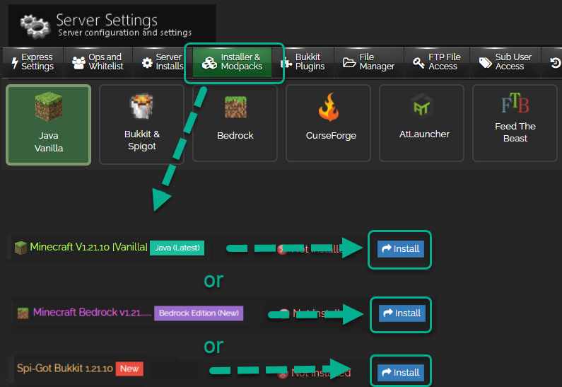 1) Stop server and go to INSTALLER AND MODPACKS section of your control panel